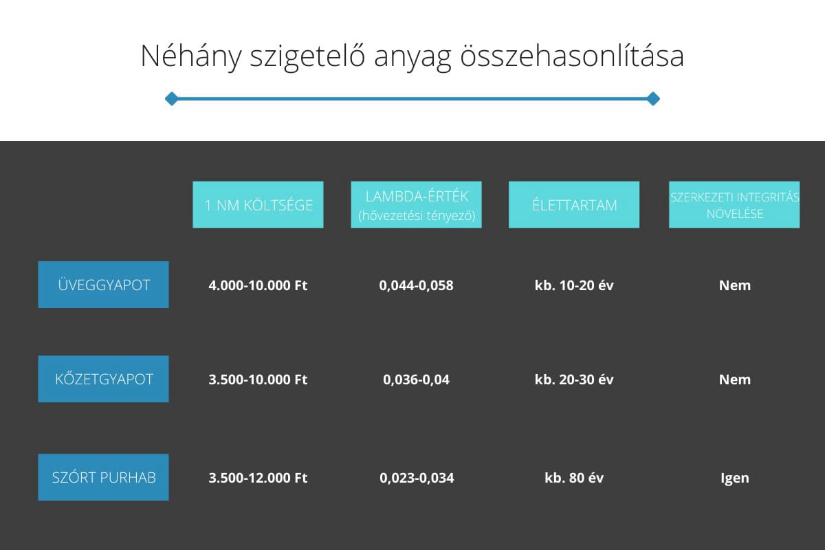 Kőzetgyapot: A kőzetgyapot szigetelés szintén rendelkezik jó hővezetési tulajdonságokkal, de általában magasabb λ-értékkel rendelkezik, mint a grafit.